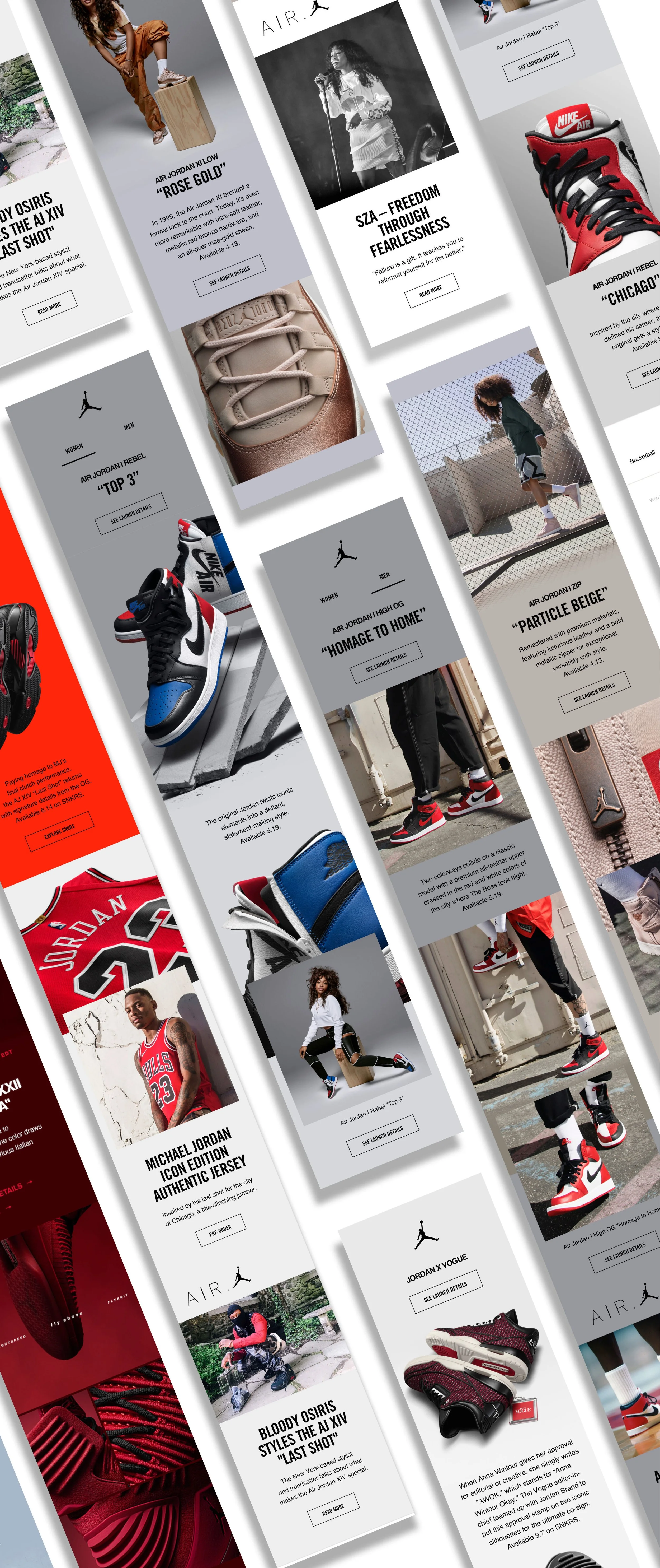 For 2 years I was designing emails for Jordan brand. I have been apart of three different email design templates that has set the email standard at Nike; two of which I created. I always enjoy working with the brand because of the great imagery they pass over. It always helps being a consumer myself but because I am, I know what the consumer is looking for and wants to see. While working on this account I have gotten great grasp pf the business side when it comes to digital platforms by using A/B test to gain better insight on improving conversion rates.